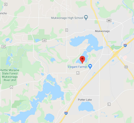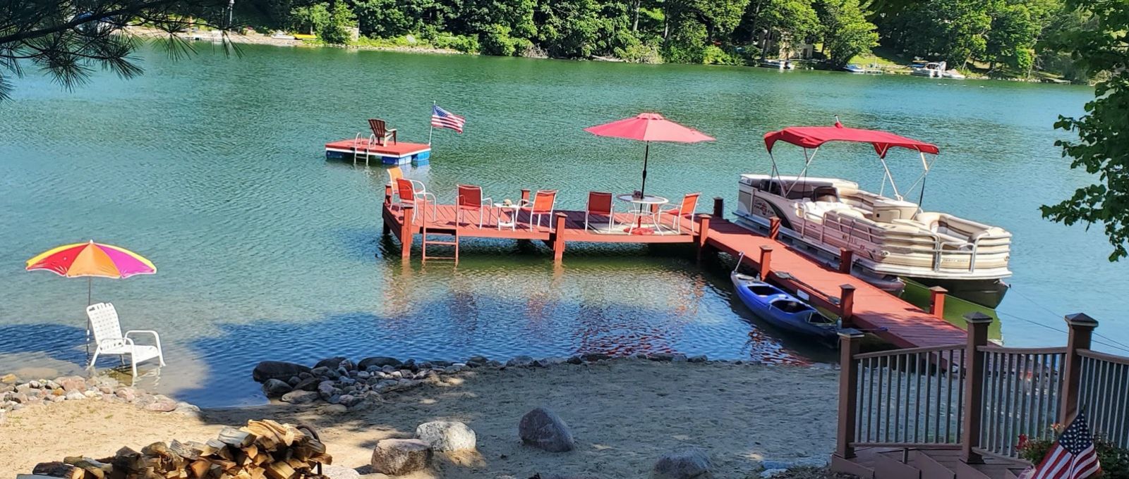 Located in Mukwonago, WI, this secluded resort-like property on Upper Phantom Lake has over 200 feet of sandy beach on one of the cleanest lakes in the state. This includes a private cove area with a landing leading to a 25 foot pontoon boat, a large wooden pier with a swimming platform, and built-in fire pit area on the beach.